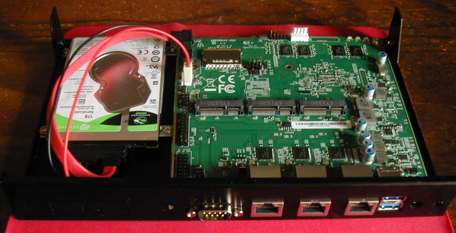 Ces petites machines sont dotées d'un processeur AMD GX quatre cœurs, de 4 Go de RAM, de trois ports Ethernet Gigabit, de deux ports USB, d'un port SATA et d'un port série. Voici à quoi ça ressemble une fois que c'est monté dans un boîtier :
