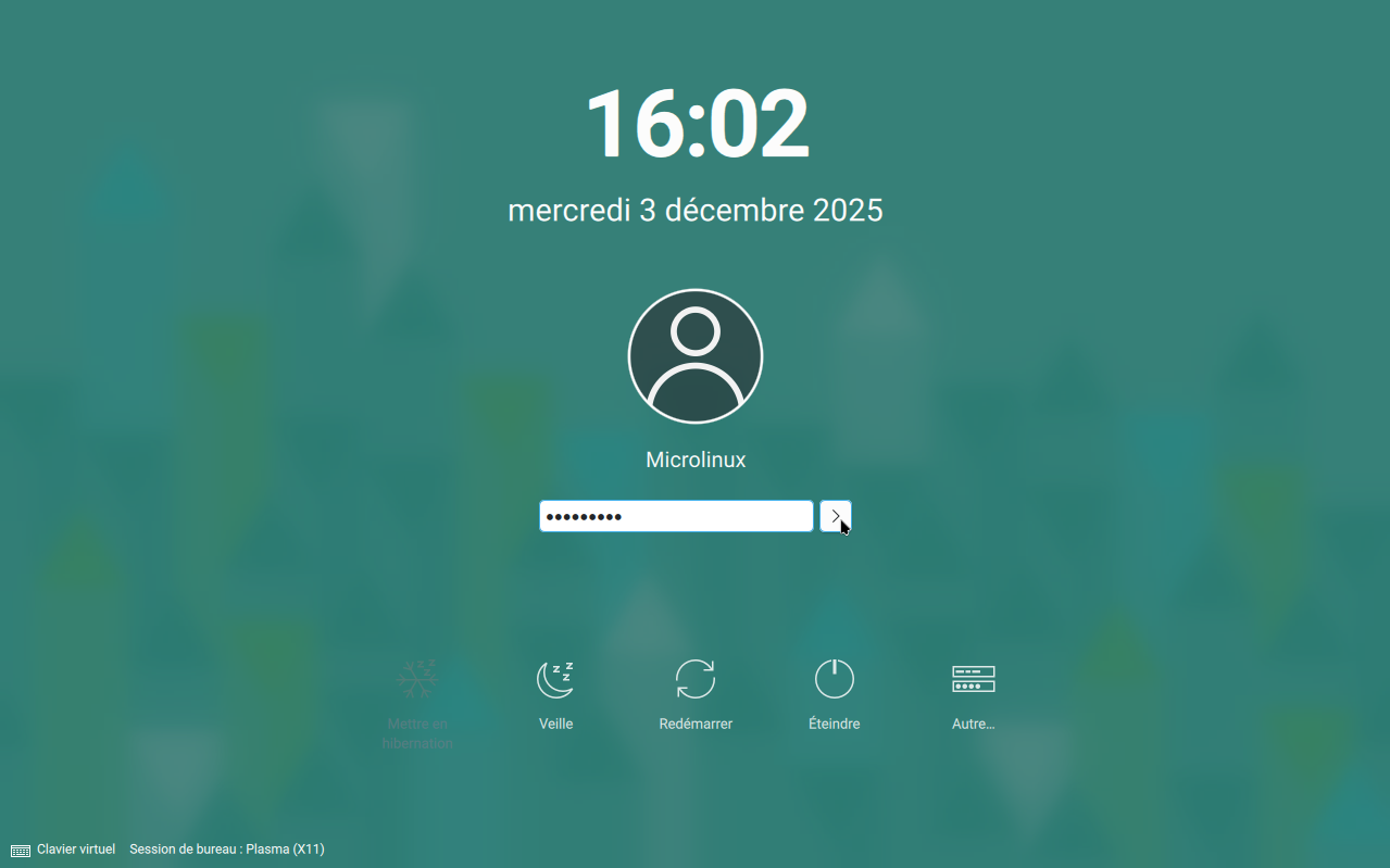 Je me retrouve face au gestionnaire de connexion SDDM :