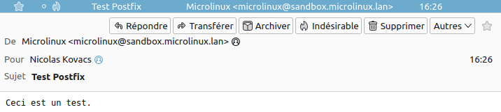 À partir de là, Postfix pourra être utilisé par les applications locales pour l'envoi d'e-mails.
