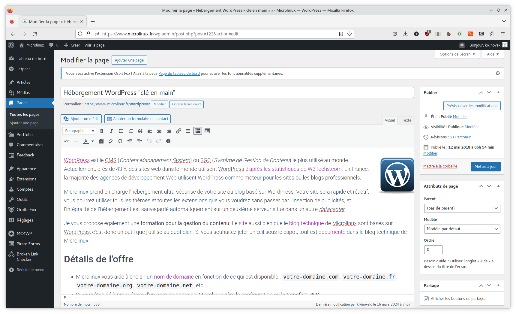 Le site web de Microlinux, c'est un peu ma vitrine professionnelle. Plus les années passent, plus je développe une prédilection marquée pour les solutions simples et sans chichis et qui vont droit au but. J'ai pris deux jours pour rédiger une série de pages qui font l'inventaire des prestations que j'ai pu proposer au cours de ces seize dernières années.