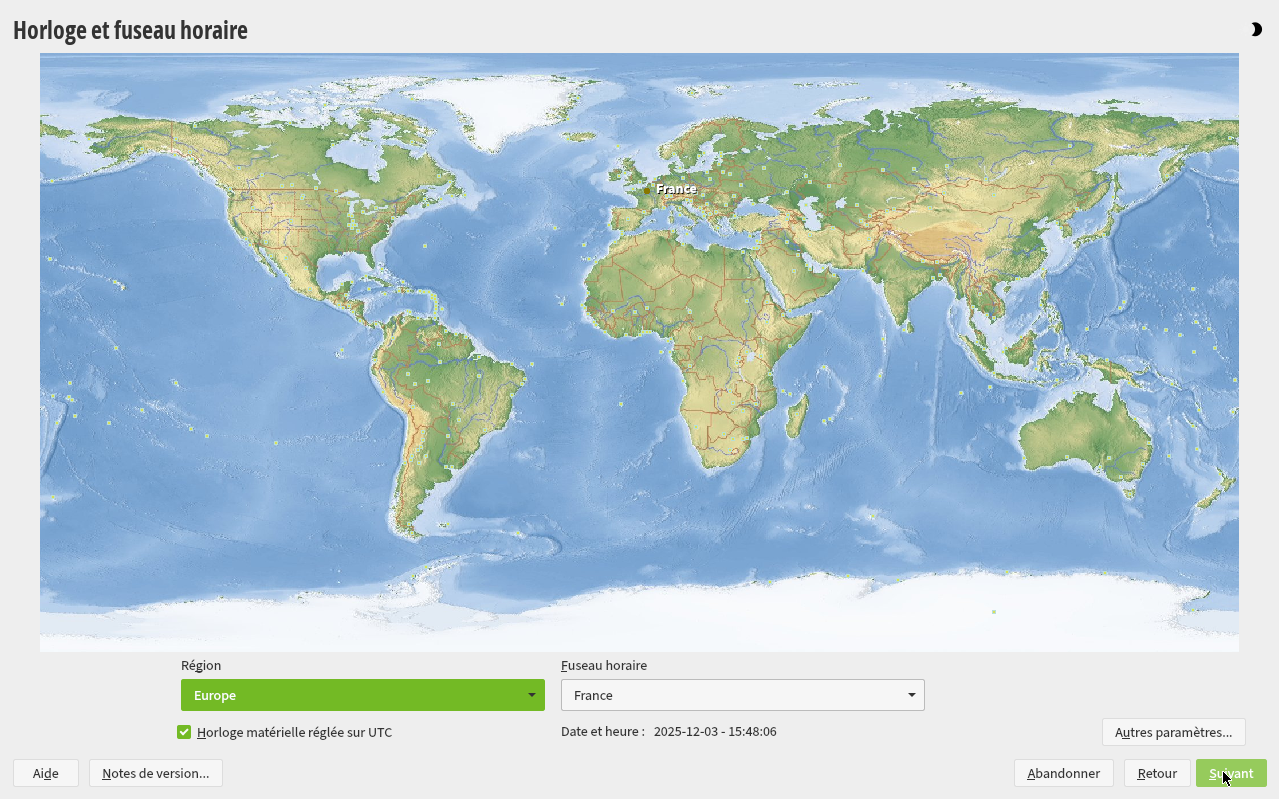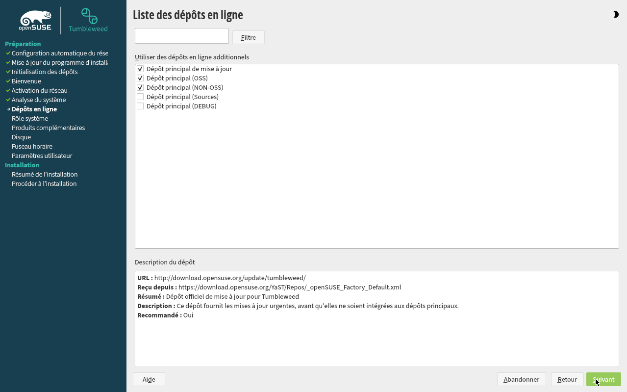 Je confirme la sélection de dépôts de paquets officiels proposés par défaut :