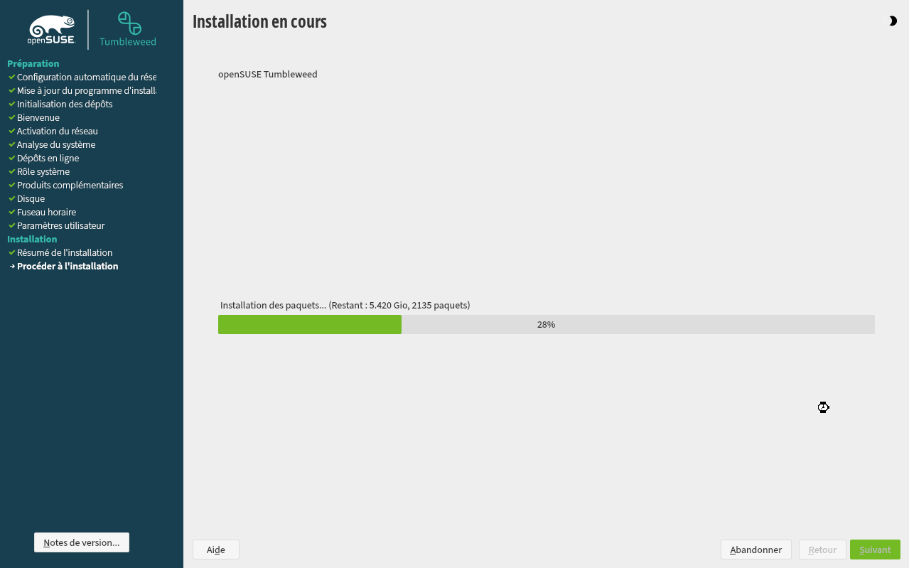 Notre poste de travail OpenSUSE Tumbleweed KDE est installé. Il ne reste plus qu'à le prendre en main et à le peaufiner aux petits oignons, ce qui fera l'objet d'une série d'articles à venir.